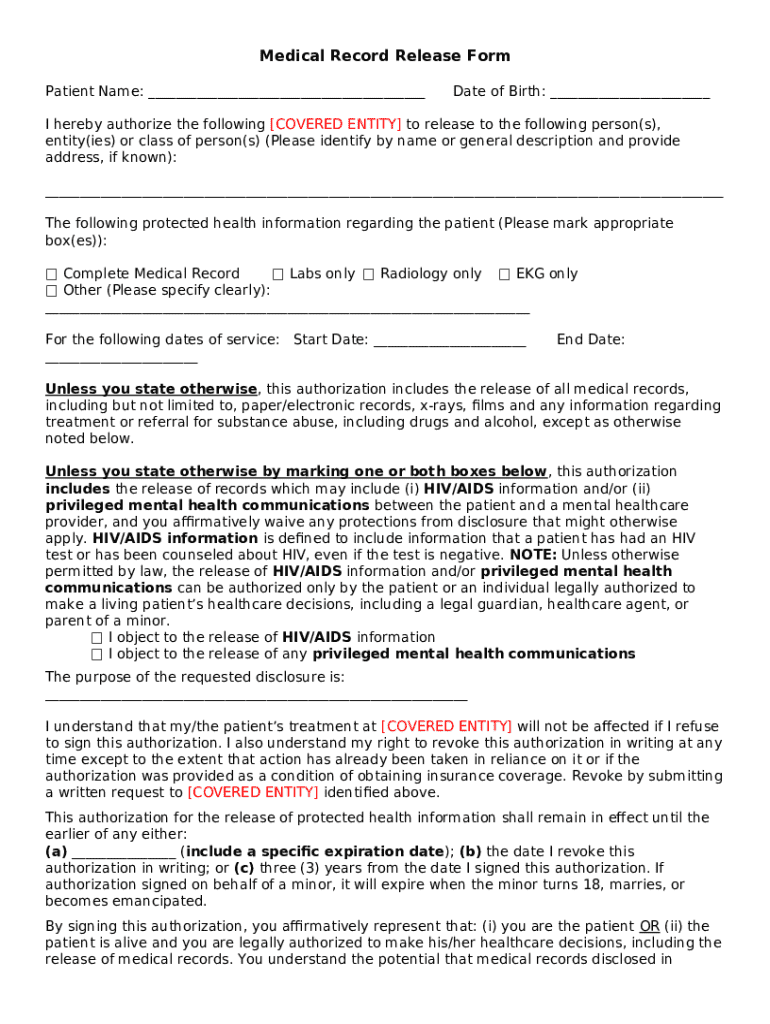 How to fill out I hereby authorize the following COVERED ENTITY to release to the following person(s), entity(ies) or class of person(s) (Please identify by name or general description and provide address, if known):