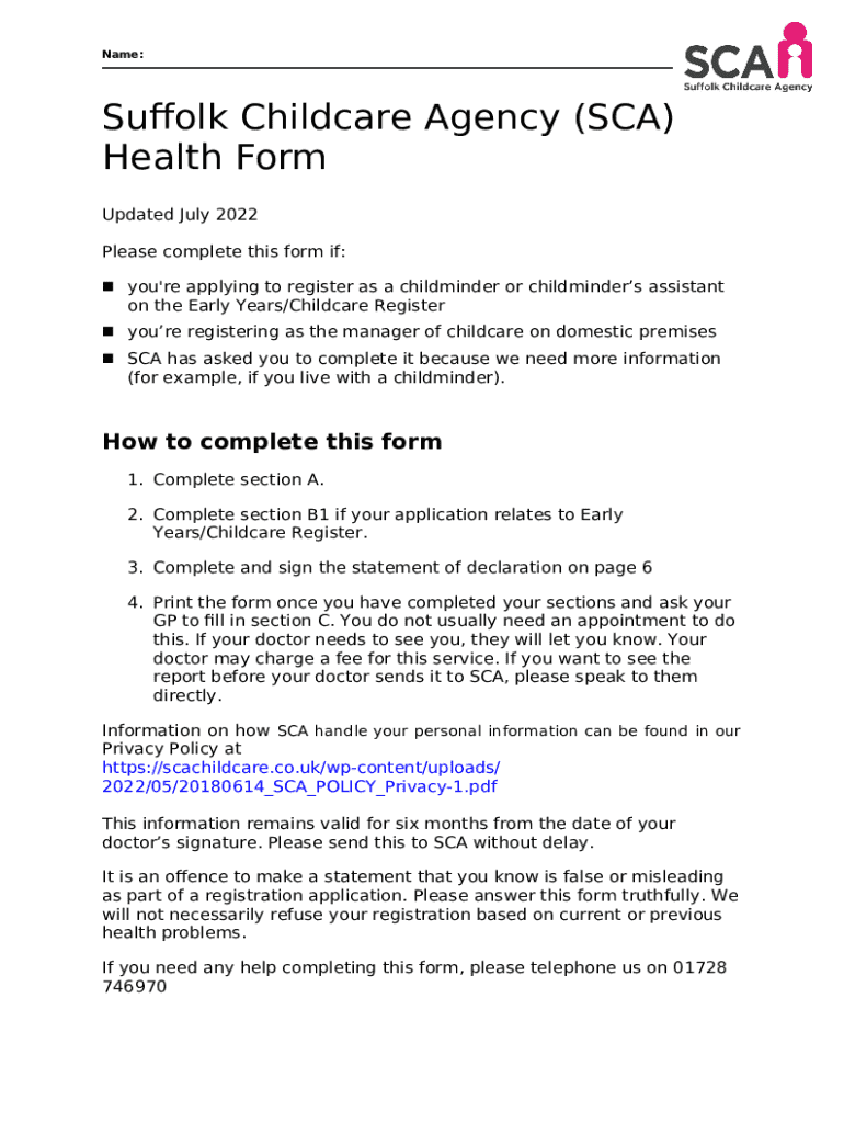 How to fill out Childminder/Assistant Health
