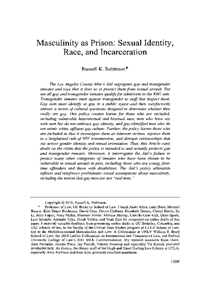 Get the free A Response to Russell Robinson's 'Masculinity as Prison ...