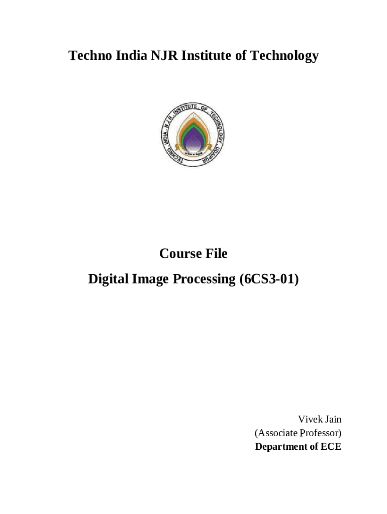 What is Techno India NJR Institute of Technology Course File Digital ... Form?