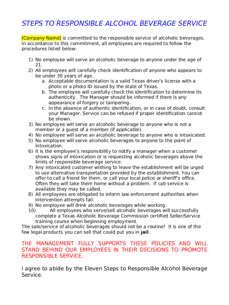 Template Responsible Service of Alcohol Policy - The Cellar Bar & Grille instructions