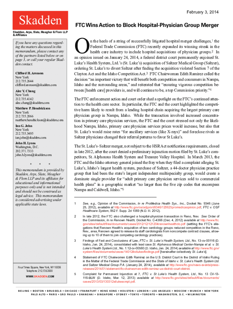 Skadden Skadden, Arps, Slate, Meagher & Flom LLP & AffiliatesIf you have any questions regarding the matters discussed in this memorandum, please contact any of the partners listed below or on page 3, or call your regular Skadden contact. Clifford H. Aronson New York 212.735.2644 clifford.aronson@skadden.com Alec Y. Chang New York 212.735.4142 alec.chang@skadden.com Matthew P. Hendrickson New York 212.735.2066 matthew.hendrickson@skadden.com Ian G. John New York 212.735.3495...