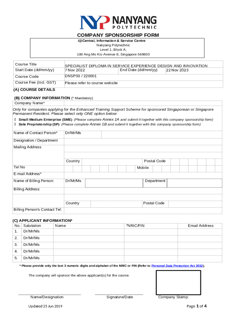 Instructions for the Nanyang Polytechnic (NYP) - Singapore form
