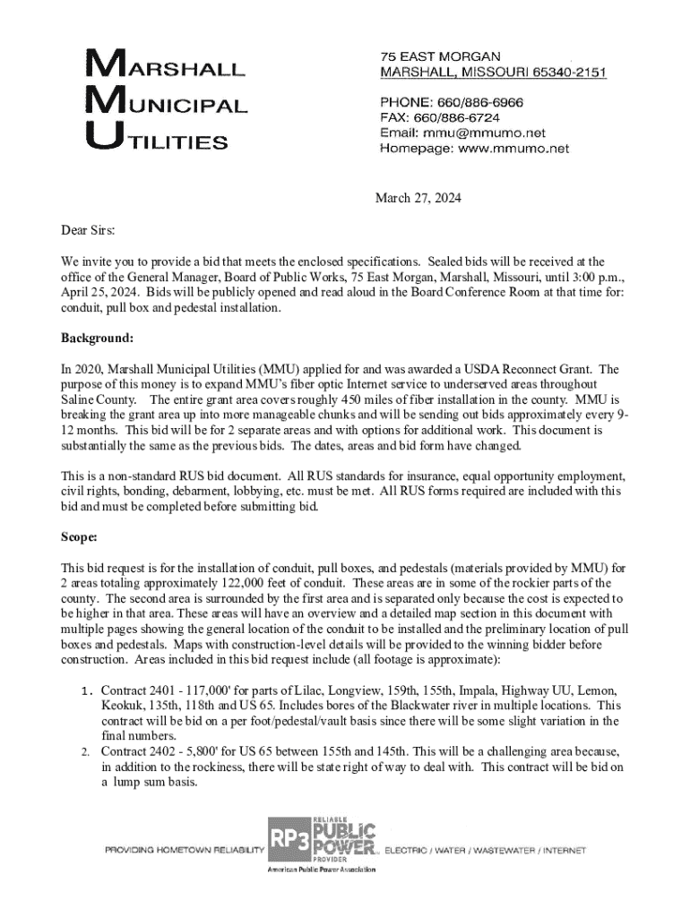March 27, 2024 Dear Sirs: We invite you to provide a bid that meets the enclosed specifications. Sealed bids will be received at the office of the General Manager, Board of Public Works, 75 East Morgan,