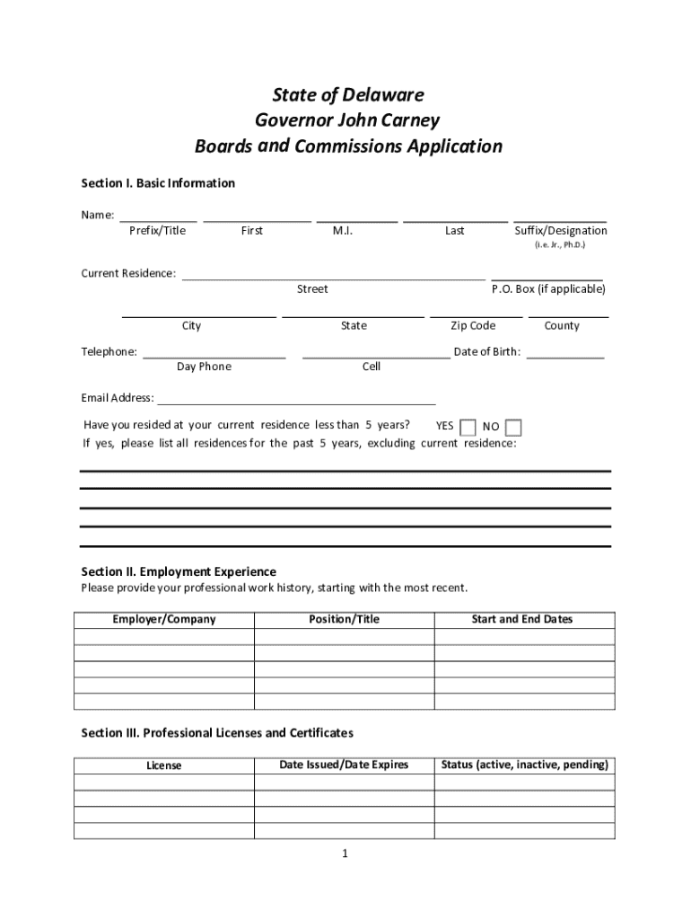 Get the free Prefix/Title - governor delaware