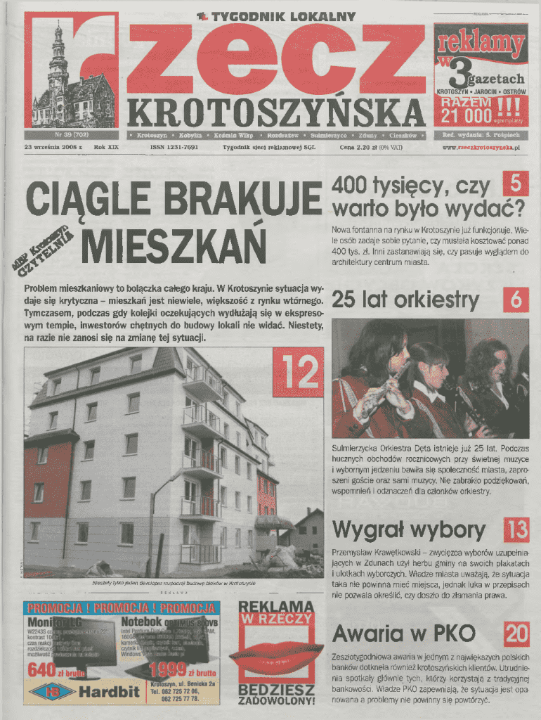 TYGODNIK LOKALNYKROTOSZYSKA1N r 39 (702) 2 3 w rze n ia 2 0 0 8 r.K ro to s z y nR o k X IX K o b y lin K o m in W lkp . R ozdraew S u lm ie rz y c eT y g o d n ik s ie c i re k la m o w e j SGLISSN