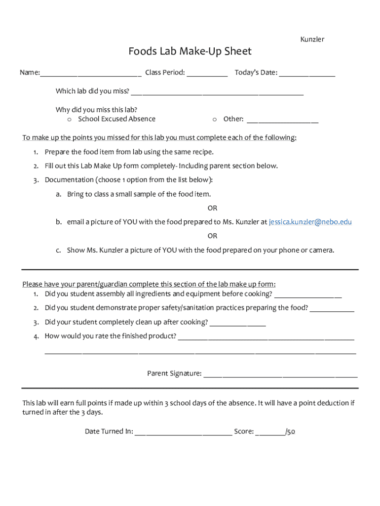 Get the free Foods Lab Make-Up Sheet