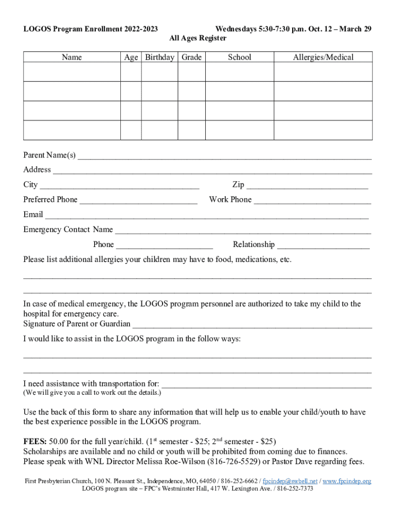 Get the free Name Age Birthday Grade School Allergies/Medical Parent ...