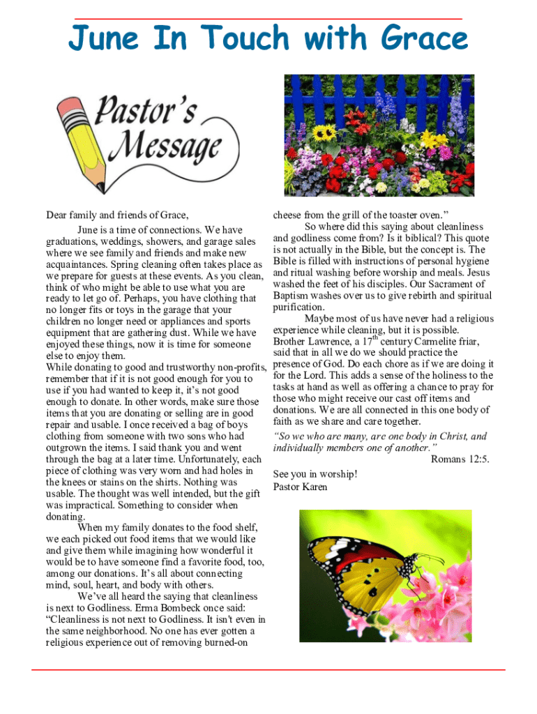 June In Touch with GraceDear family and friends of Grace, June is a time of connections. We have graduations, weddings, showers, and garage sales where we see family and friends and make new acquaintances.