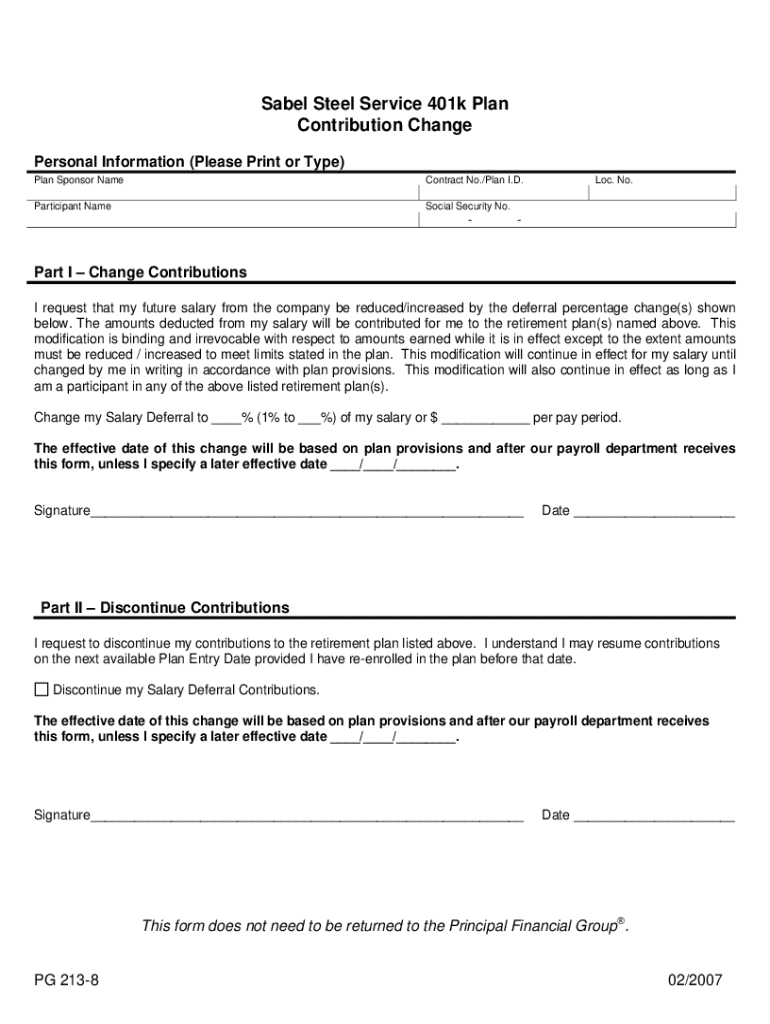 Get the free Sabel Steel Service 401k Plan Contribution Change