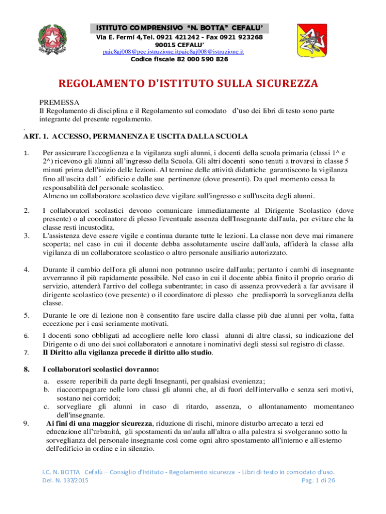 Codices fiscal 82 000 590 826REGOLAMENTO D\'INSTITUTE