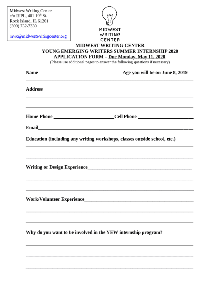Instructions for the form APPLICATION Due Monday, May 11, 2020