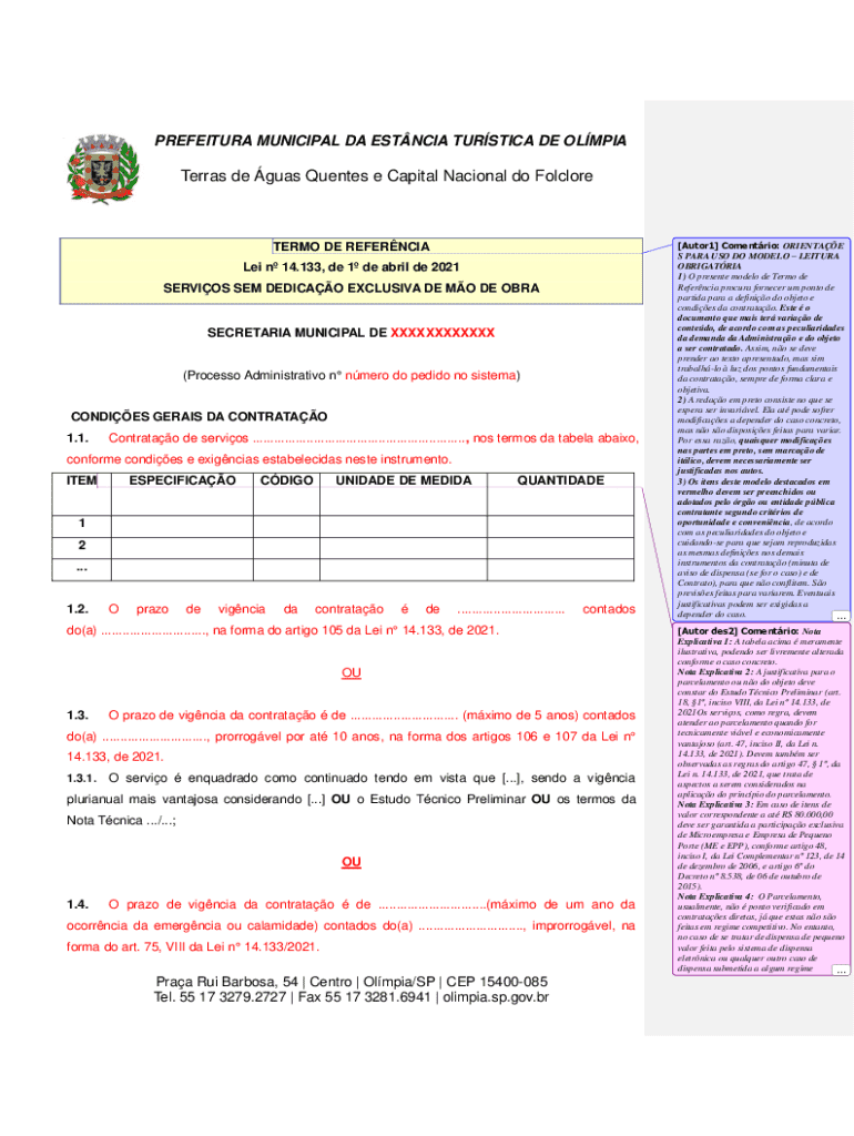 PREFECTURE MUNICIPAL DA ESTONIA JUSTICE DE OLMPIATerras de gas Fuentes e Capital National do FolcloreTERMO DE REFERENCE