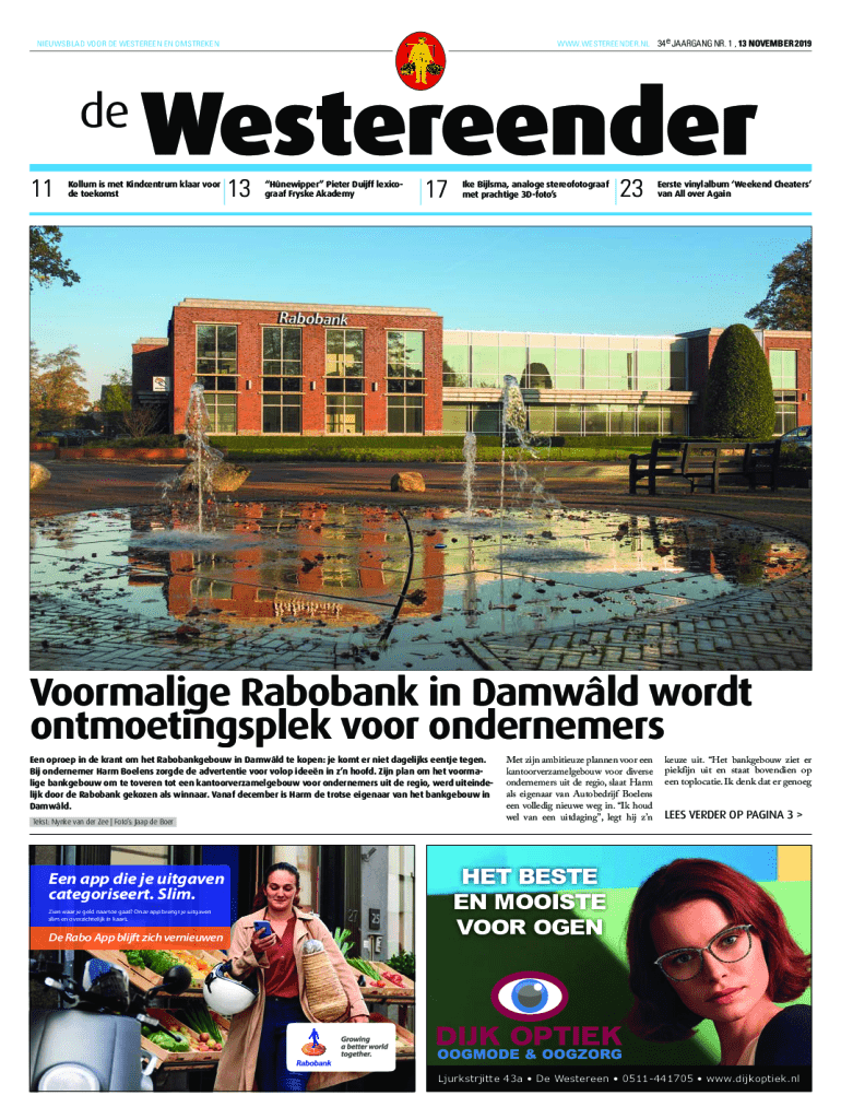 WWW.WESTEREENDER.NL 34e JAARGANG NR. 1 , 13 NOVEMBER 2019NIEUWSBLAD VOOR DE WESTEREEN EN OMSTREKENde 11WestereenderKollum is met Kindcentrum klaar voor de toekomst13Hnewipper Pieter Duijff lexicograaf
