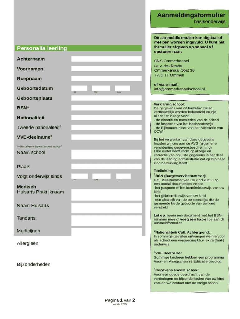 Instructions for the form Relatie tot kind