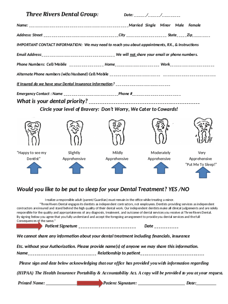 How to fill out Three Rivers Dental Group:Date: //