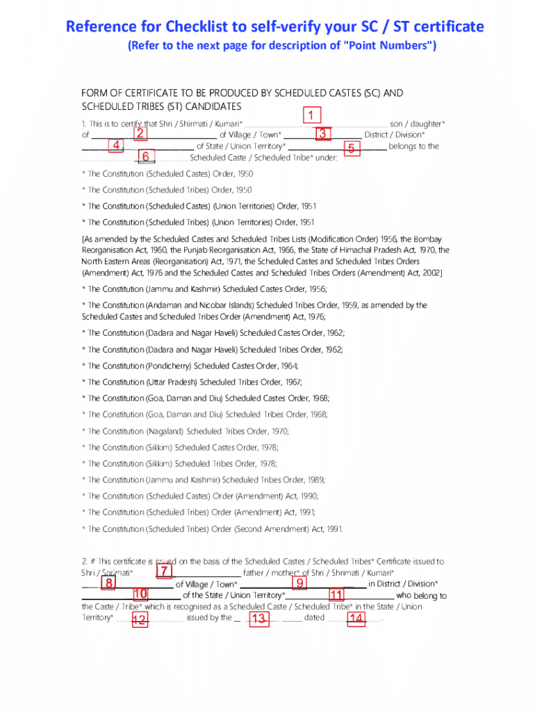 Get the free Reference for Checklist to self-verify your SC / ST certificate - admissions nid