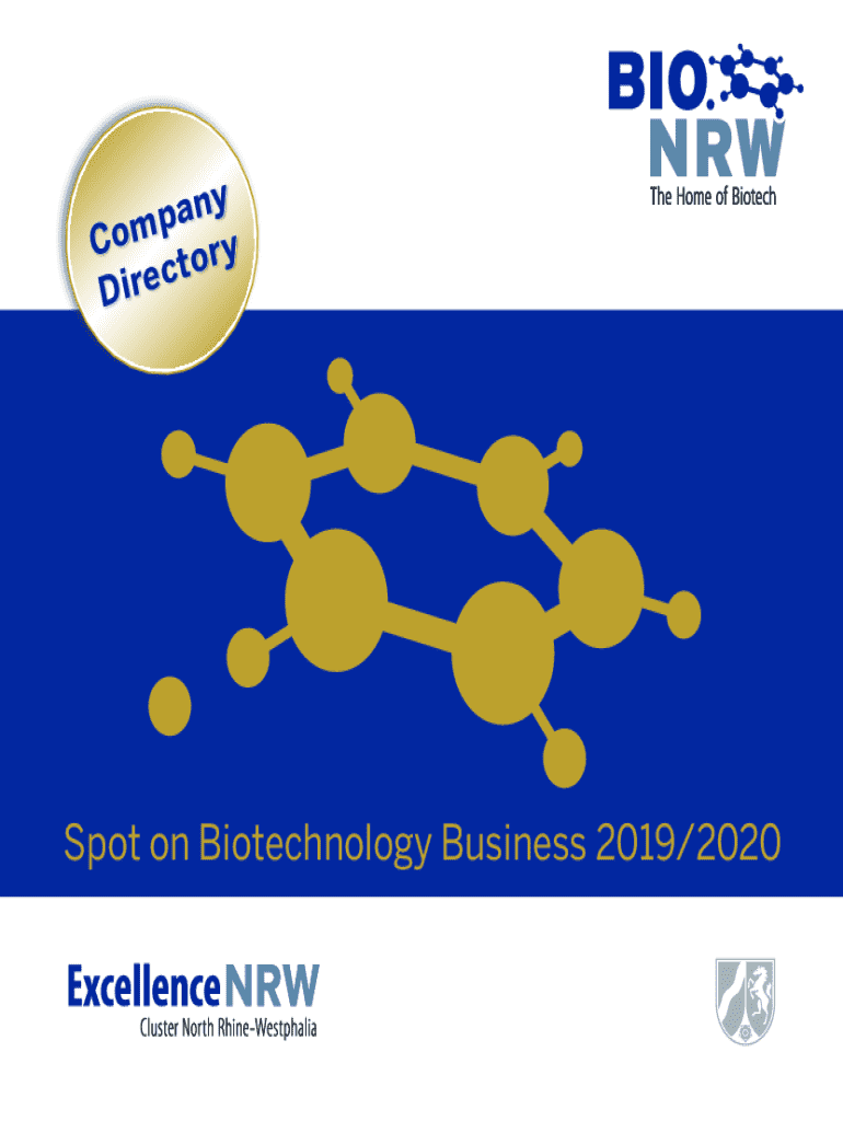 NY a p Co m o r y ct D i despot on Biotechnology Business 2019/2020From Mind to Market: Biotechnology Company Directory 2019/2020 North RhineWestphaliaBIO.NRW4BIO.Editorial Dear Reader, North Rhine