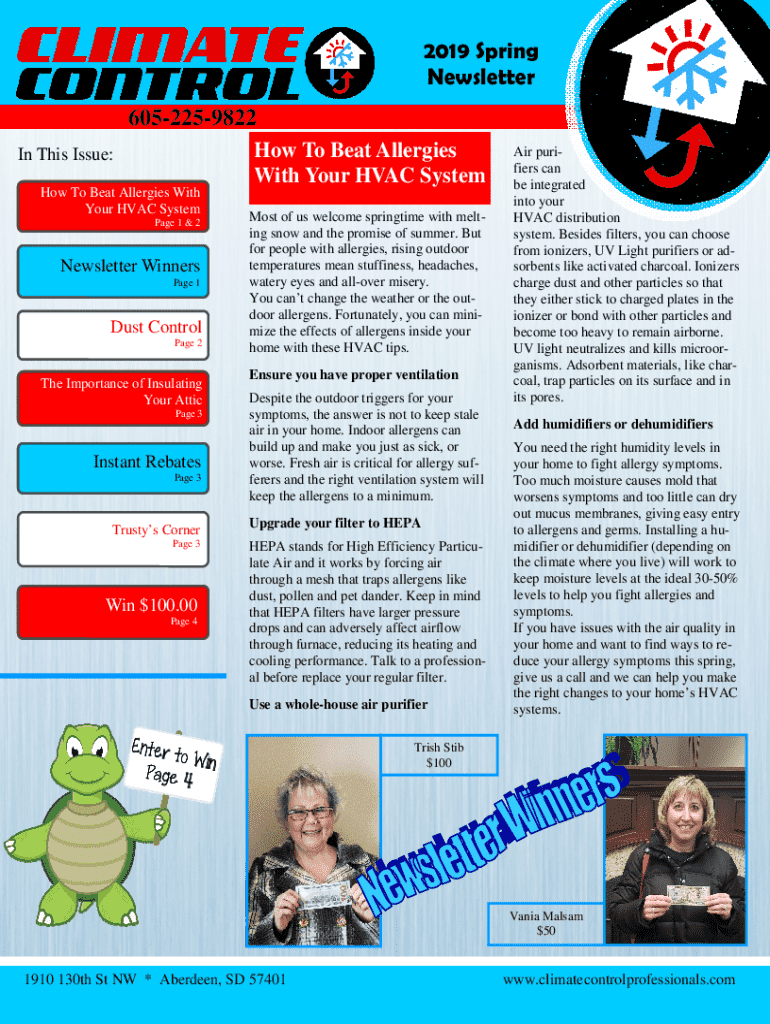 2019 Spring Newsletter 6052259822 In This Issue: How To Beat Allergies With Your HVAC System Page 1 & 2Newsletter Winners Page 1Dust Control Page 2The Importance of Insulating Your Attic Page 3Instant
