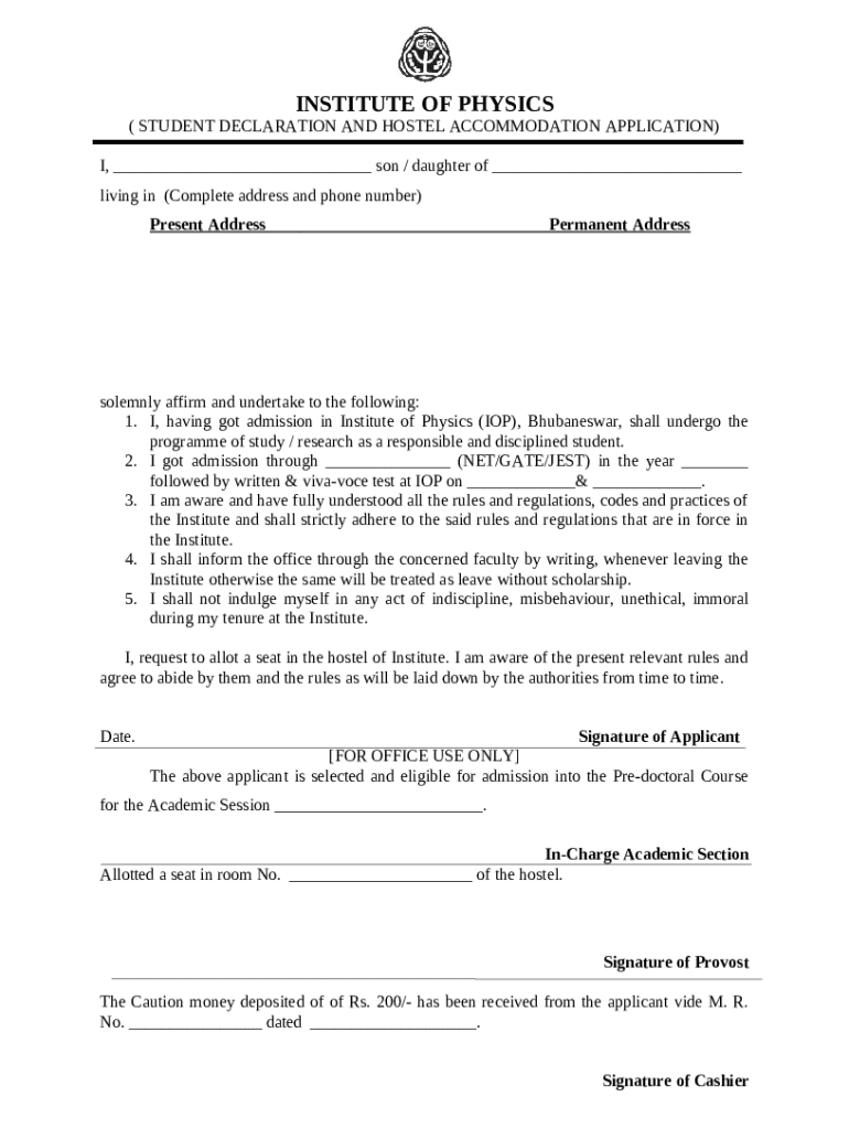 The student declaration and hostel accommodation application is a Word document that has to be filled-out and signed for specified reasons. In that case, it is provided to the exact addressee to provide some information of any kinds. The completion and signing is available in hard copy or via a suitable tool e. g. PDFfiller. These tools help to send in any PDF or Word file online. It also allows you to customize it depending on the needs you have and put a valid digital signature. Upon finishing, the user sends the student declaration and hostel accommodation application to the recipient or several recipients by mail or fax. PDFfiller has a feature and options that make your document of MS Word extension printable. It provides various settings when printing out. It does no matter how you'll send a document - physically or by email - it will always look neat and clear. To not to create a new document from the beginning every time, make the original form as a template. Later, you will have a rewritable sample.