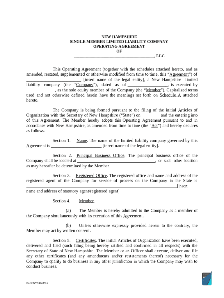 What is New Hampshire Single-Member LLC Operating Agreement Template. sPal.com Form?