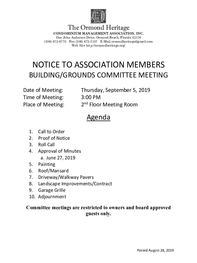 Get the free Notice to Association Members of Joint Building & Grounds ...