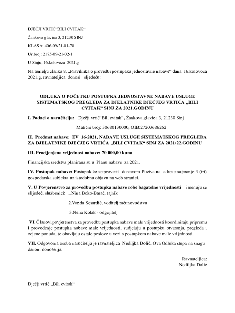 Get the free Na temelju lanka 8. Pravilnika o provedbi postupaka ...
