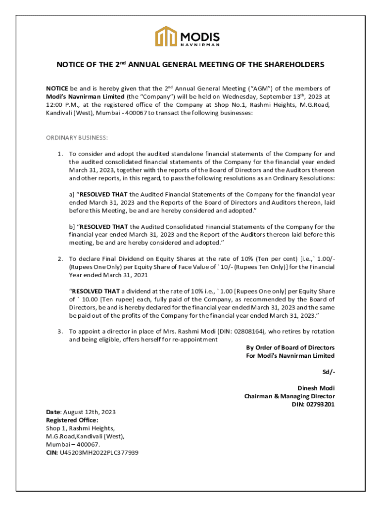 Get the free Notice of 41st AGM - Modison Group