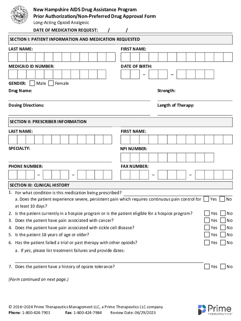 To benefit from the NH Adap long-acting opioid form, individuals must meet specific eligibility requirements. Primarily, the form caters to patients diagnosed with conditions requiring sustained opioid therapy, such as severe chronic pain conditions, cancer-related pain, or conditions resulting from surgery or trauma. Patients need to provide documentation from healthcare providers indicating their diagnosis and the rationale for opioid therapy.