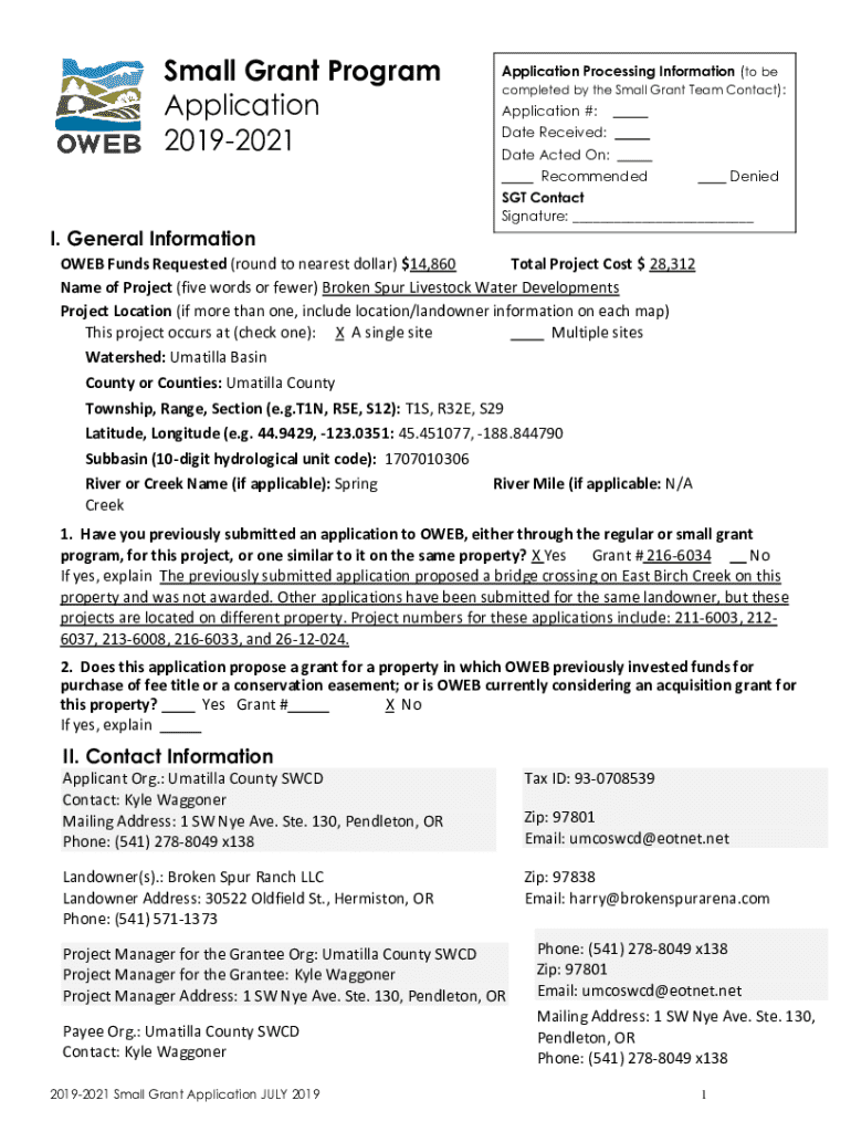 Small Grant Program Application 20192021Application Processing Information (to be completed by the Small Grant Team Contact): Application #: Date Received: Date Acted On: RecommendedDeniedSGT Contact