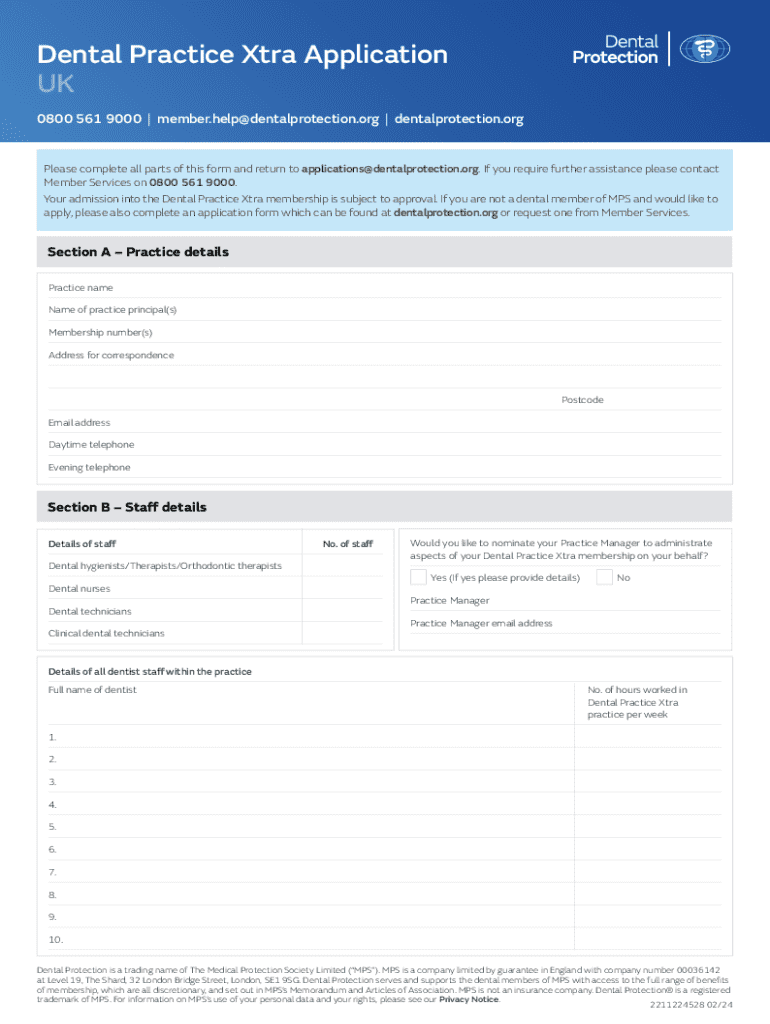 Dental Practice Xtra Application UK 0800 561 9000 | member.help@dentalprotection.org | dentalprotection.orgPlease complete all parts of this form and return to applications@dentalprotection.org. If