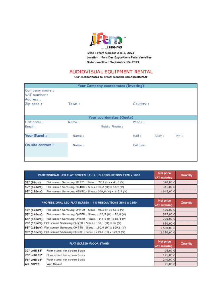 Order deadline : September 15 2023AUDIOVISUAL EQUIPMENT RENTAL