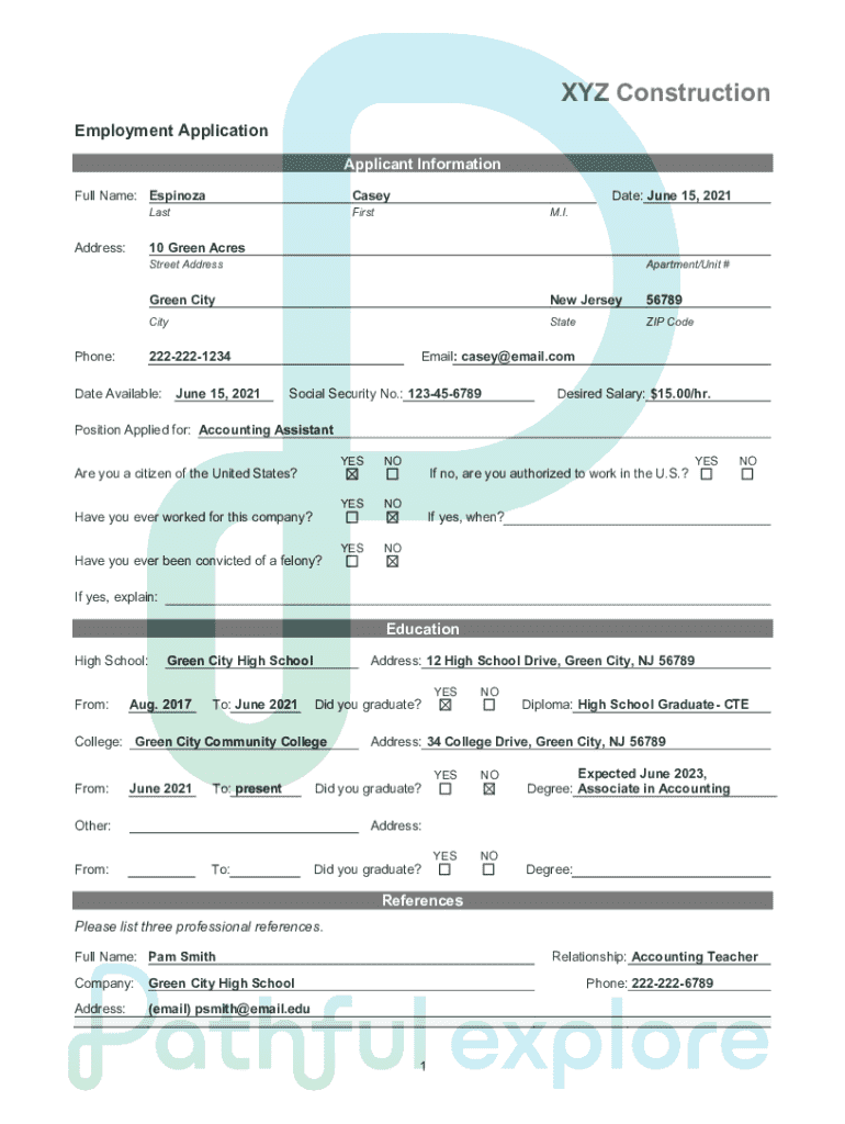 Get the free Sample job application from a recent college graduate