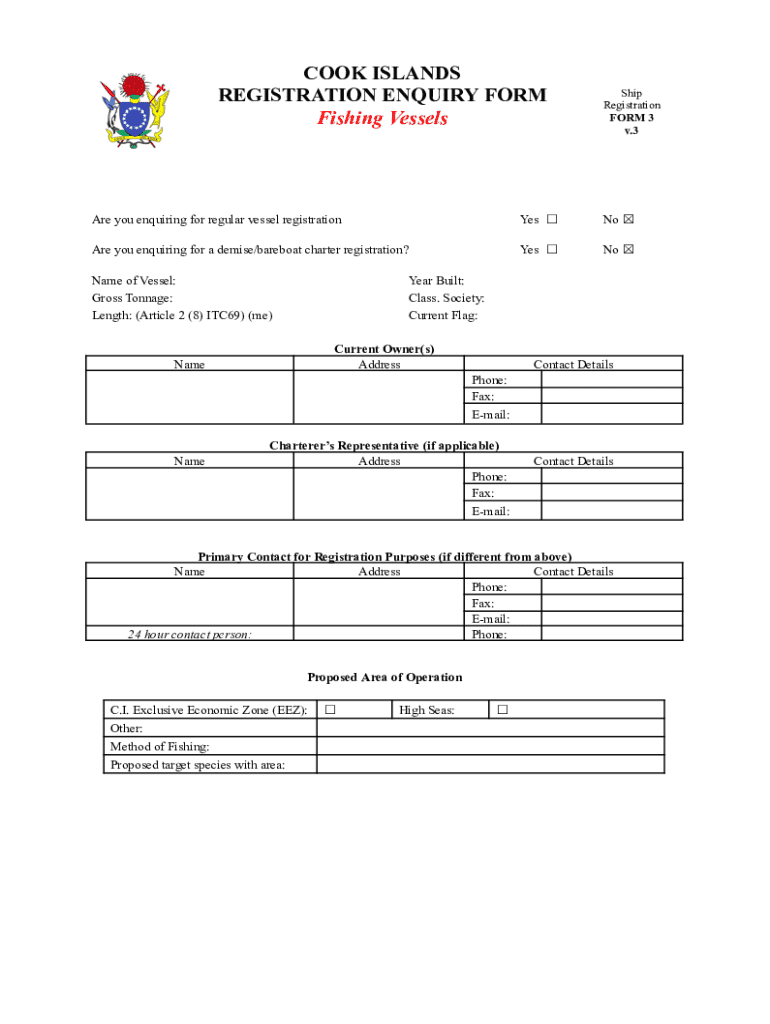 Get the free Form 3 Registration Enquiry Form Fishing Vessel v3