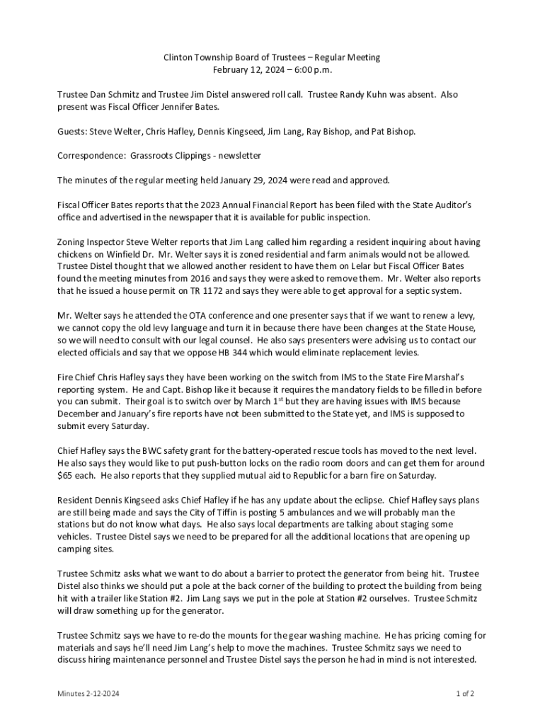 Get the free Trustee Dan Schmitz and Trustee Jim Distel answered roll call