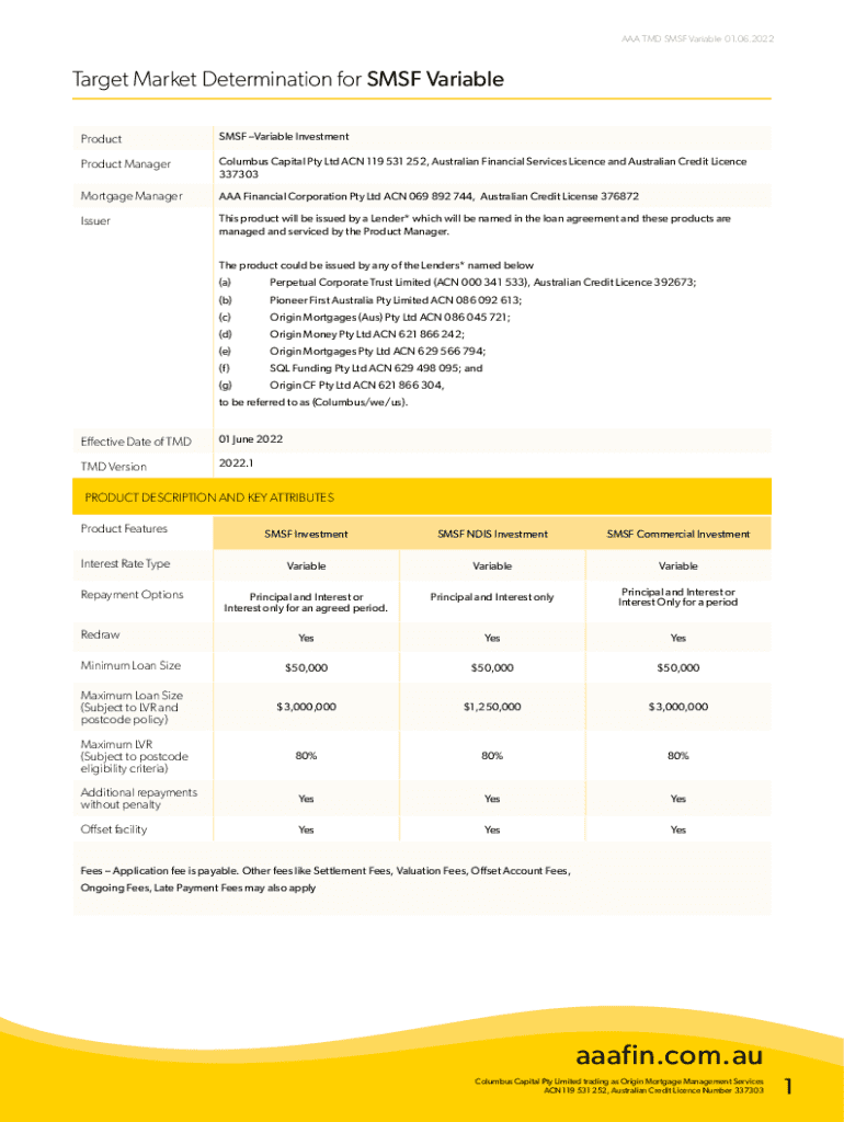Get the free Target Market Determination for SMSF Investment Variable