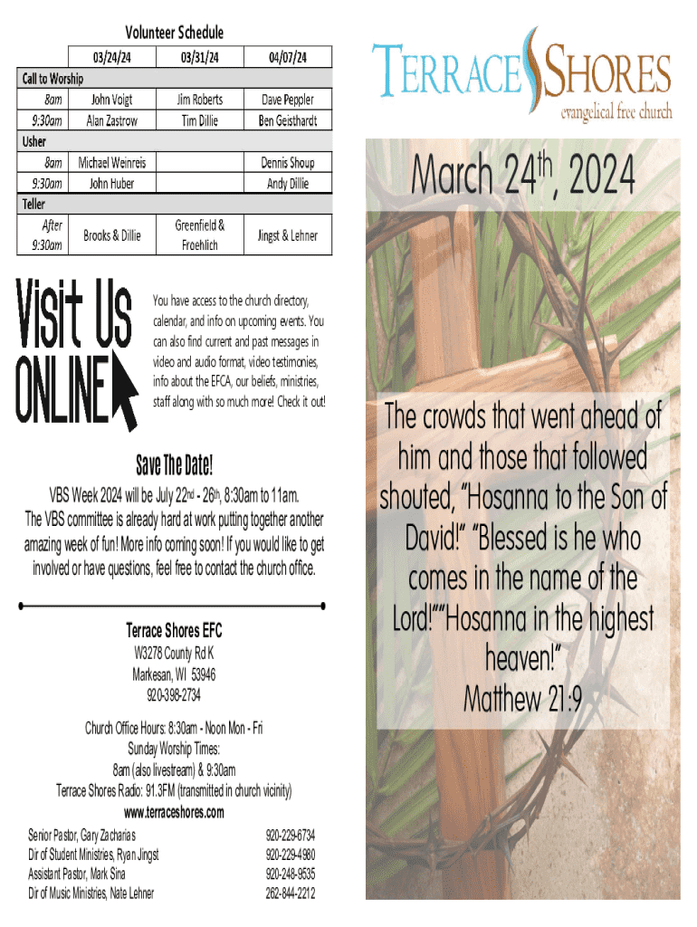 After completing the form, consider utilizing pdfFiller’s tools for comments and annotations to provide any additional instructions or notes relevant to your team. Furthermore, integrating eSignature functionality allows you to easily have volunteers sign off on their schedules, ensuring everyone is aligned and committed.