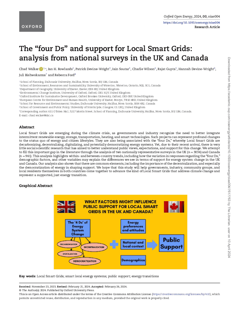 Oxford Open Energy, 2024, 00, oiae004 https://doi.org/10.1093/ooenergy/oiae004Research ArticleChad Walker1,*, Ian H. Rowlands2 , Patrick DevineWright3 , Iain Soutar3 , Charlie Wilson4 , Rajat Gupta5 , Hannah DevineWright6 ,Juli Bishwokarma7 and Rebecca Ford8 1 Schoolof Planning, Dalhousie University, Halifax, Nova Scotia, B3J 1B6, Canada of Environment, Resources and Sustainability, University of Waterloo, Waterloo, Ontario, N2L 3G1, Canada 3 Department of Geography, University of Exeter,