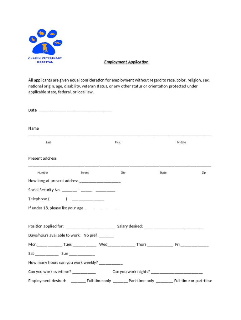 Instructions for the form All applicants are given equal consideration for employment without regard to race, color, religion, sex, national origin, age, disability, veteran status, or any other status or orientation protected under applicable state, federal, or local law