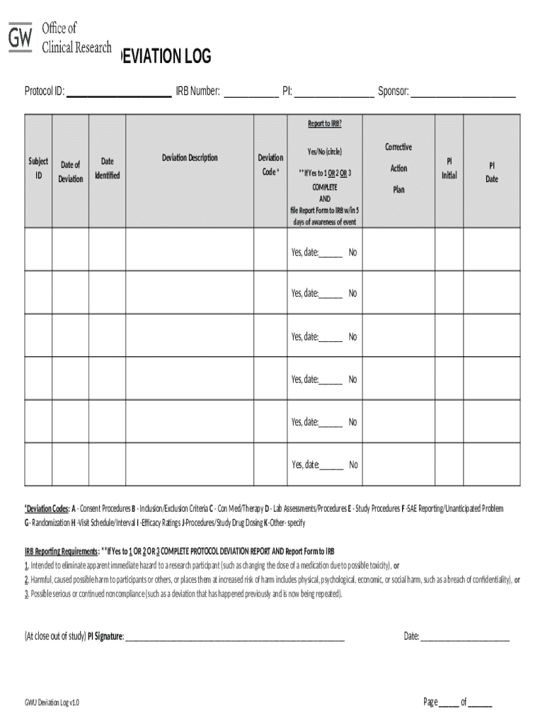 Frequently asked questions about the form NIMH Subject-Specific Protocol Deviation Log Template