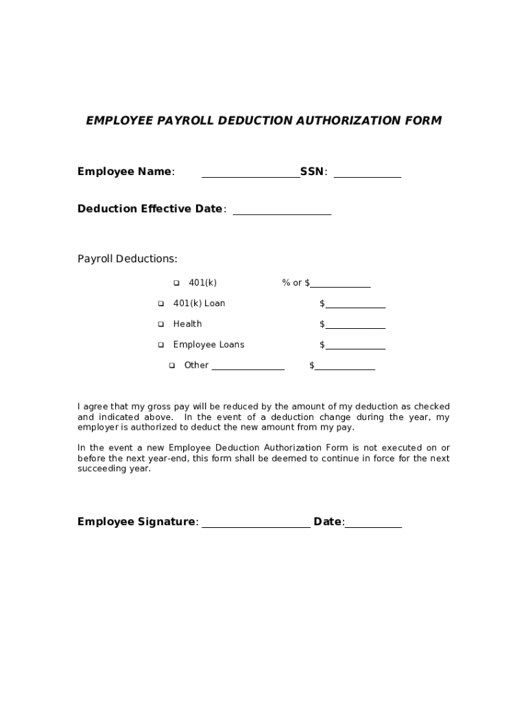 Frequently asked questions about the form Payroll Deduction Authorization Template