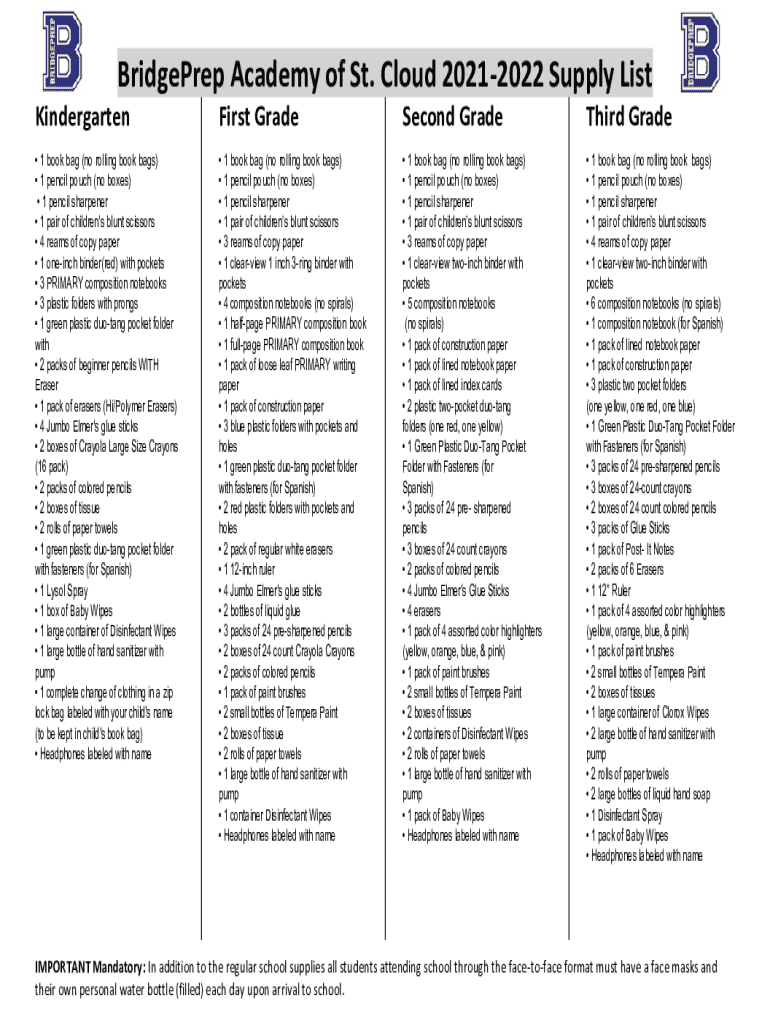BridgePrep Academy of St. Form offers various essential forms designed for different purposes. Understanding which forms are necessary and their functions can streamline the application process and ensure compliance with school policies.