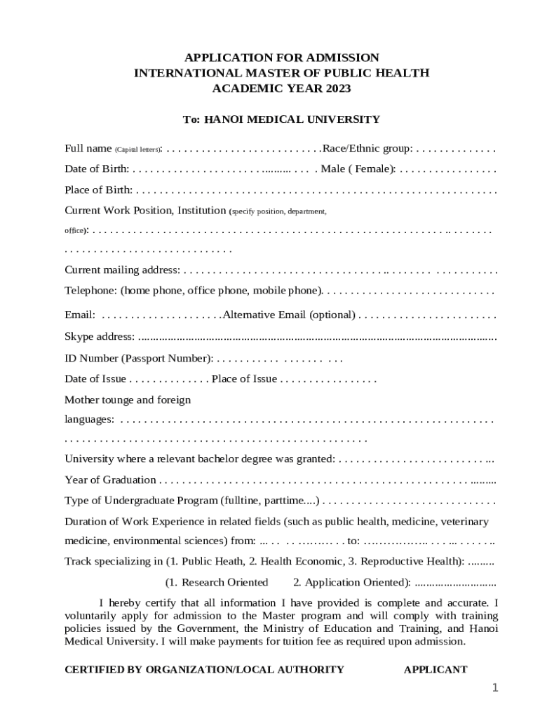 The Hanoi Medical University application form serves as the primary gateway for prospective students wishing to enroll in various medical programs. The form collects essential information about applicants, allowing the admissions committee to evaluate qualifications, experiences, and motivations for studying medicine. Understanding the structure and requirements of this application is crucial for success.