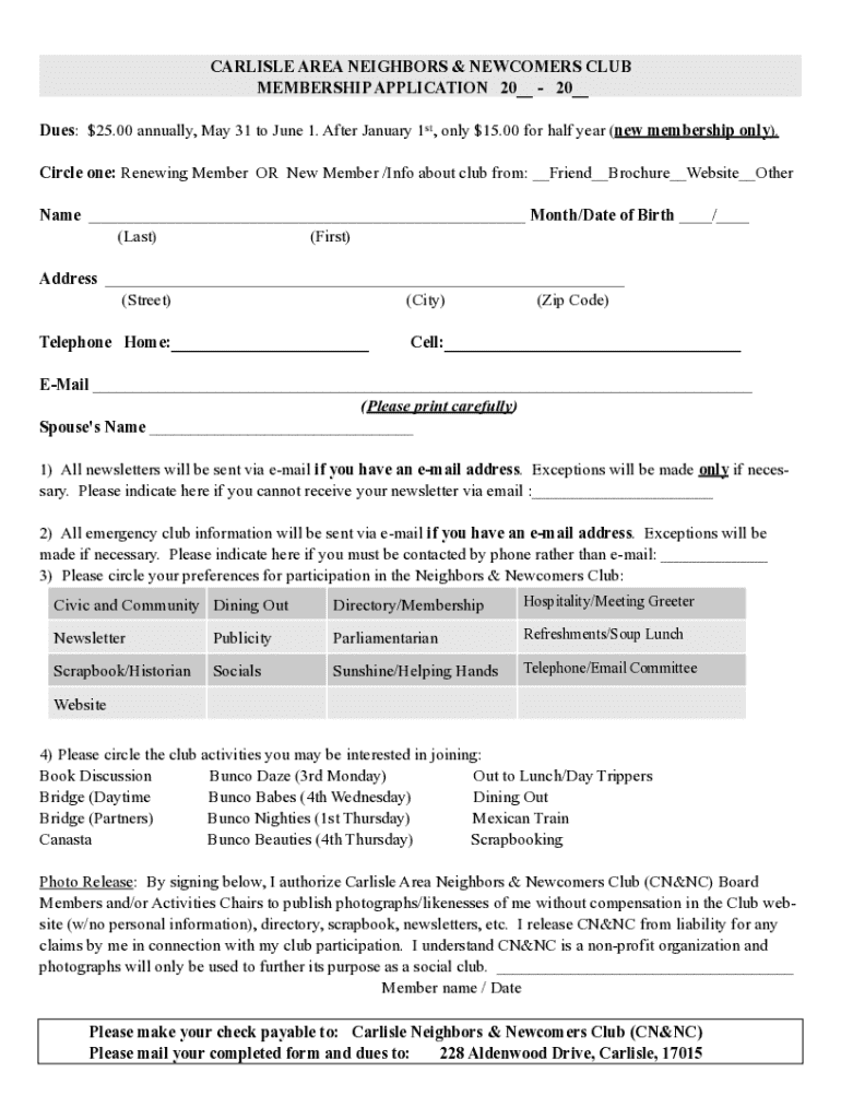 To ensure a seamless registration process, filling out the newcomers membership permanent form requires accurate and complete personal information. Applicants typically need to provide their full name, current address, email, and phone number. Each piece of information is crucial as it allows the membership organization to establish a direct line of communication with the newcomers.