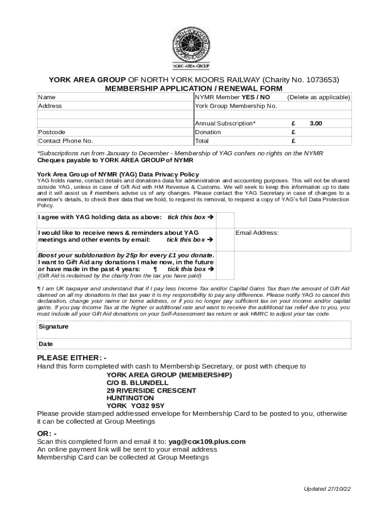 Get the free YAG Member Application-Renewal ...