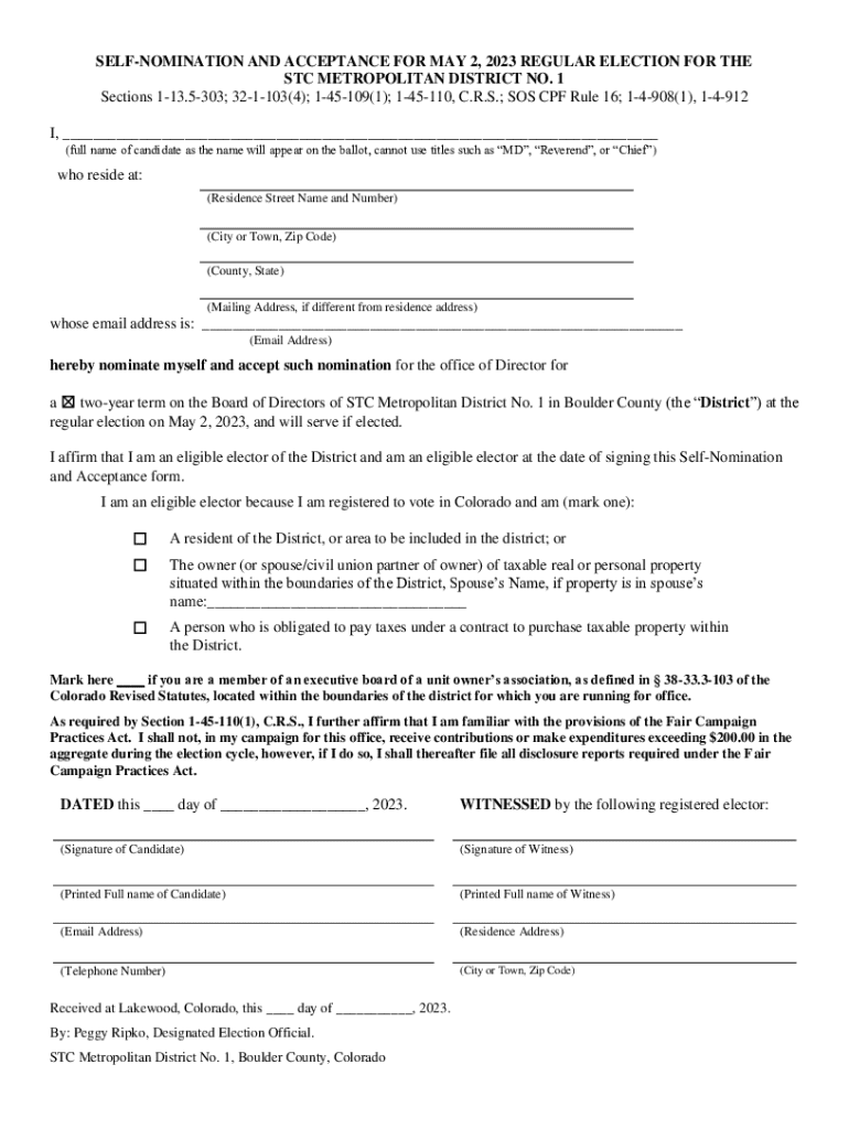Get the free Self-Nomination and Acceptance Form (Blank) May 2, 2023