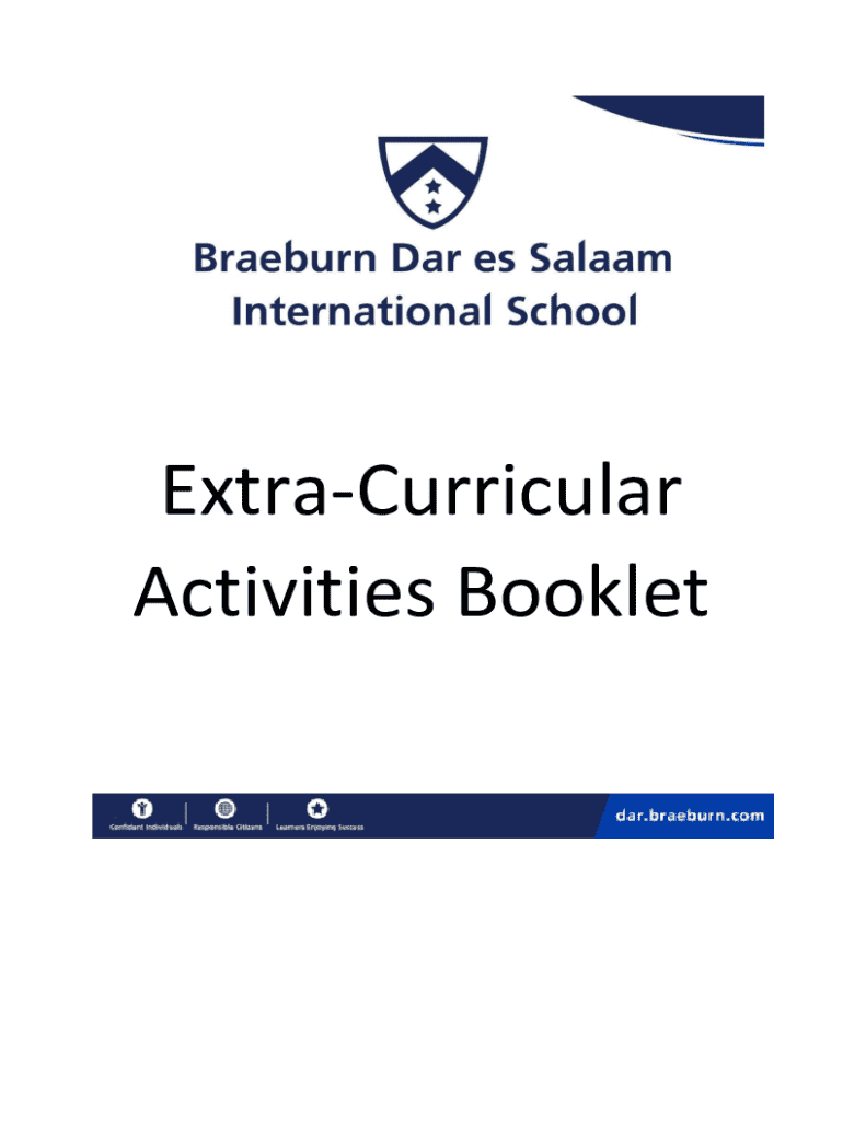 The extra-curricular activities booklet serves as a roadmap for students and their families, outlining the various opportunities available at the school. It aims to provide clear, organized information that encourages maximum participation in school clubs and programs.