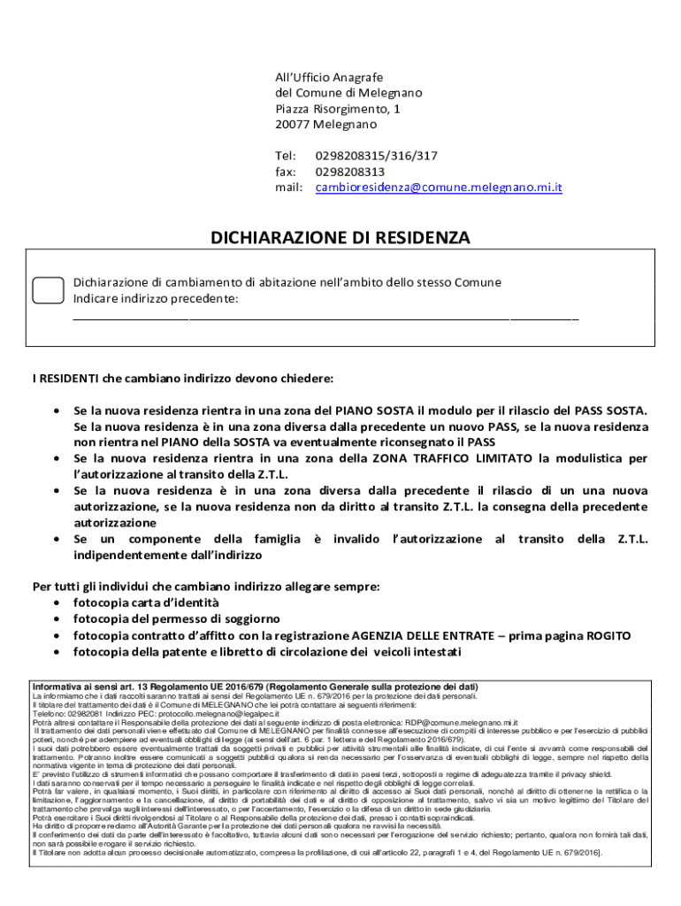 mail: cambioresidenza@comune.melegnano.mi.itDICHIARAZIONE DI RESIDENTS