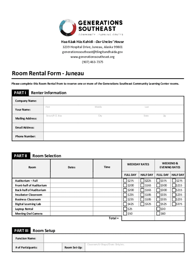 Juneau Room Rental Form is not the form you're looking for?Search for another form here.