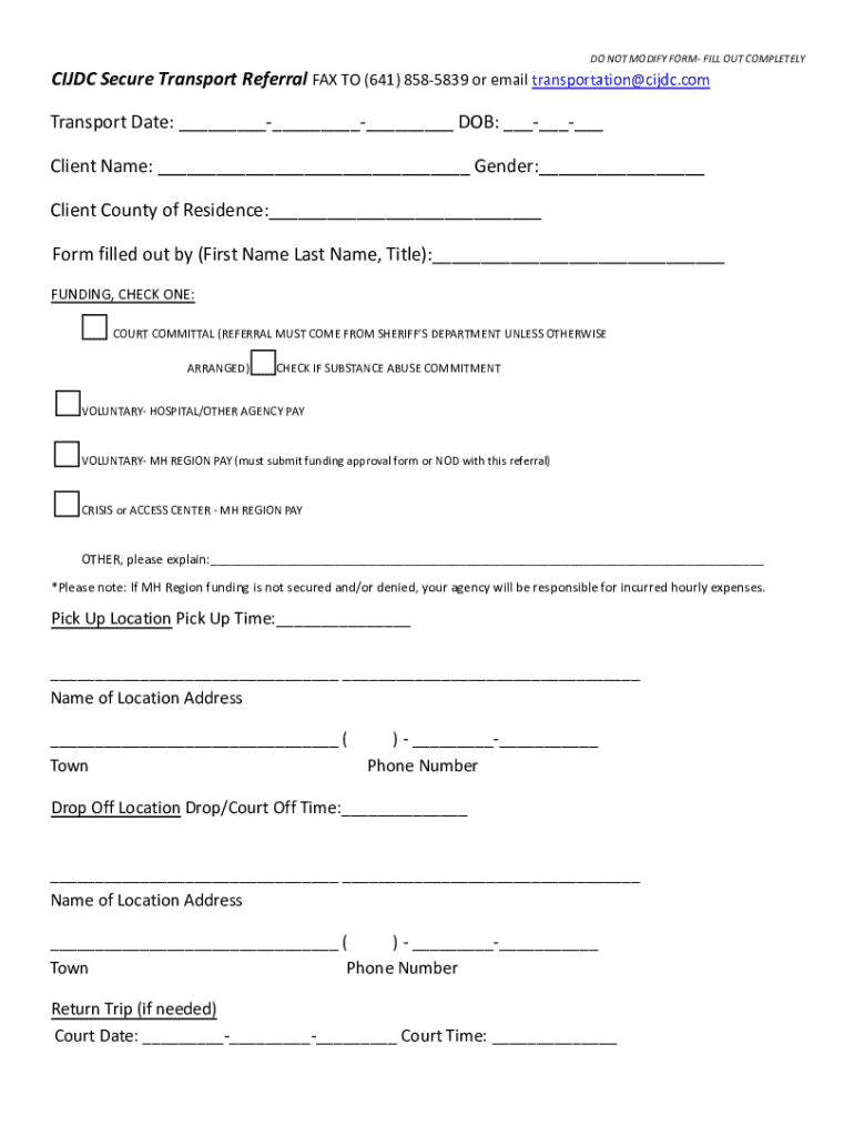 How to fill out cijdc secure transport referral